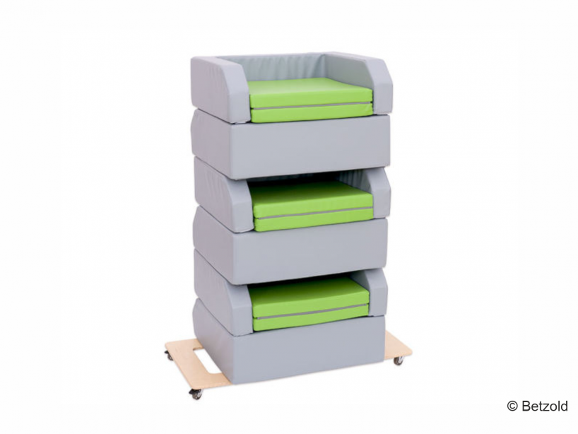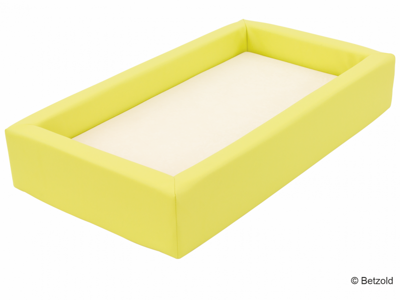 Mit weichem Schaumstoffkern und hautfreundlichen, sehr weichem Schaumstoffkern und hautfreundlichen, sehr weichem Kunstlederbezug. Aufgrund des geringen Gewichtes leicht zu transportieren und zu stapeln. Herausnehmbare Matratze, 6 cm stark.